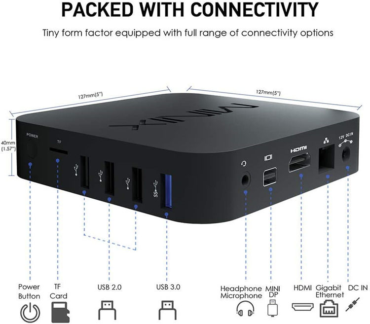 MINIX NEO Z83-4 MAX 4GB/128GB Mini PC,คอมพิวเตอร์ InteI Z8350 Win10 Pro Dual-Band WiFi Gigabit Ethernet เอาต์พุตคู่จ่ายไฟ4K