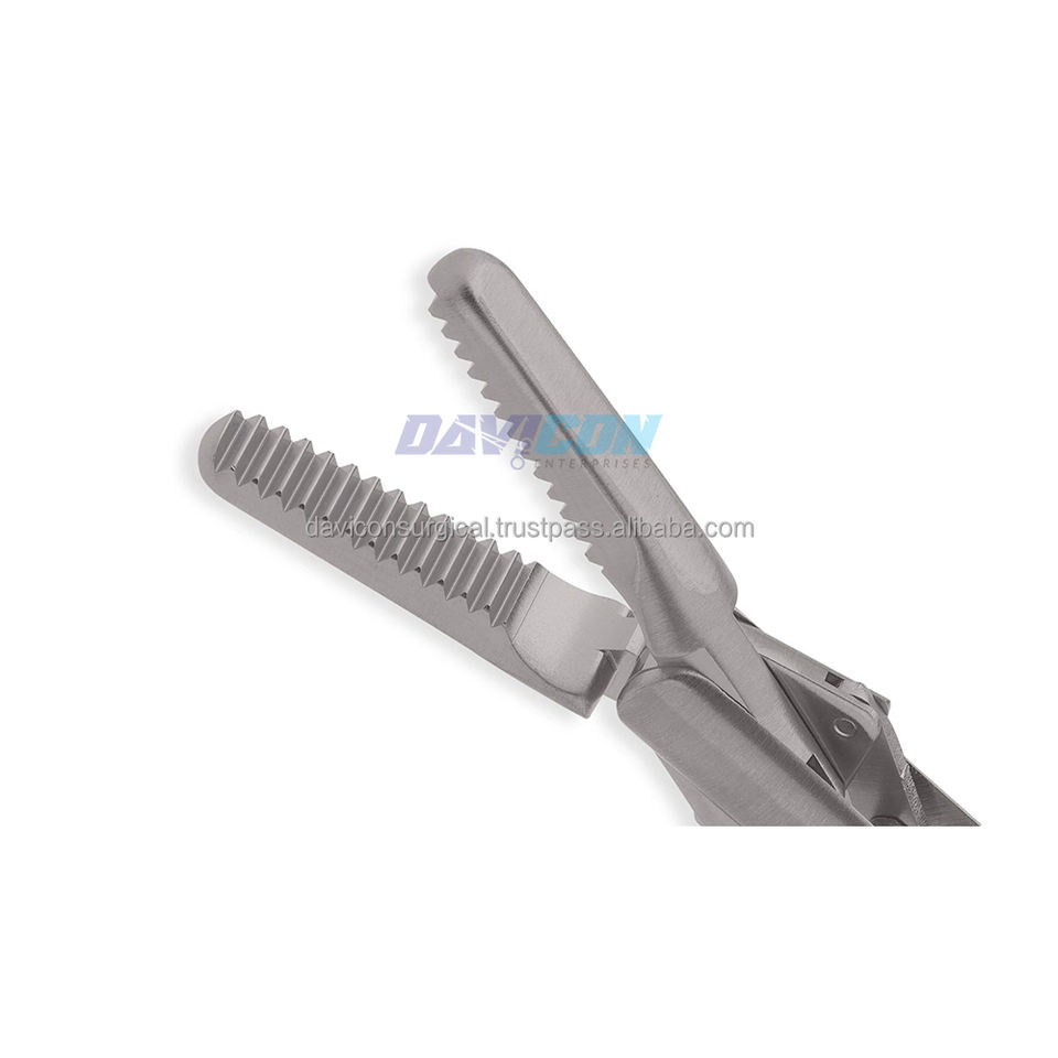 คีมจับแบบใช้มือ สแตนเลส ปลายตรง ขนาด 2.8 มม. ปลายหยัก ด้ามยาว 5 มม. ความยาวใช้งาน 10 นิ้ว (25 ซม.) ด้ามจับแบบบีบ 14 นิ้ว