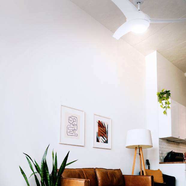 Mistral 3052พัดลมเพดานสีขาวขนาด132ซม., รีโมทคอนโทรล DC มอเตอร์สำหรับใช้ในบ้านและโรงแรม