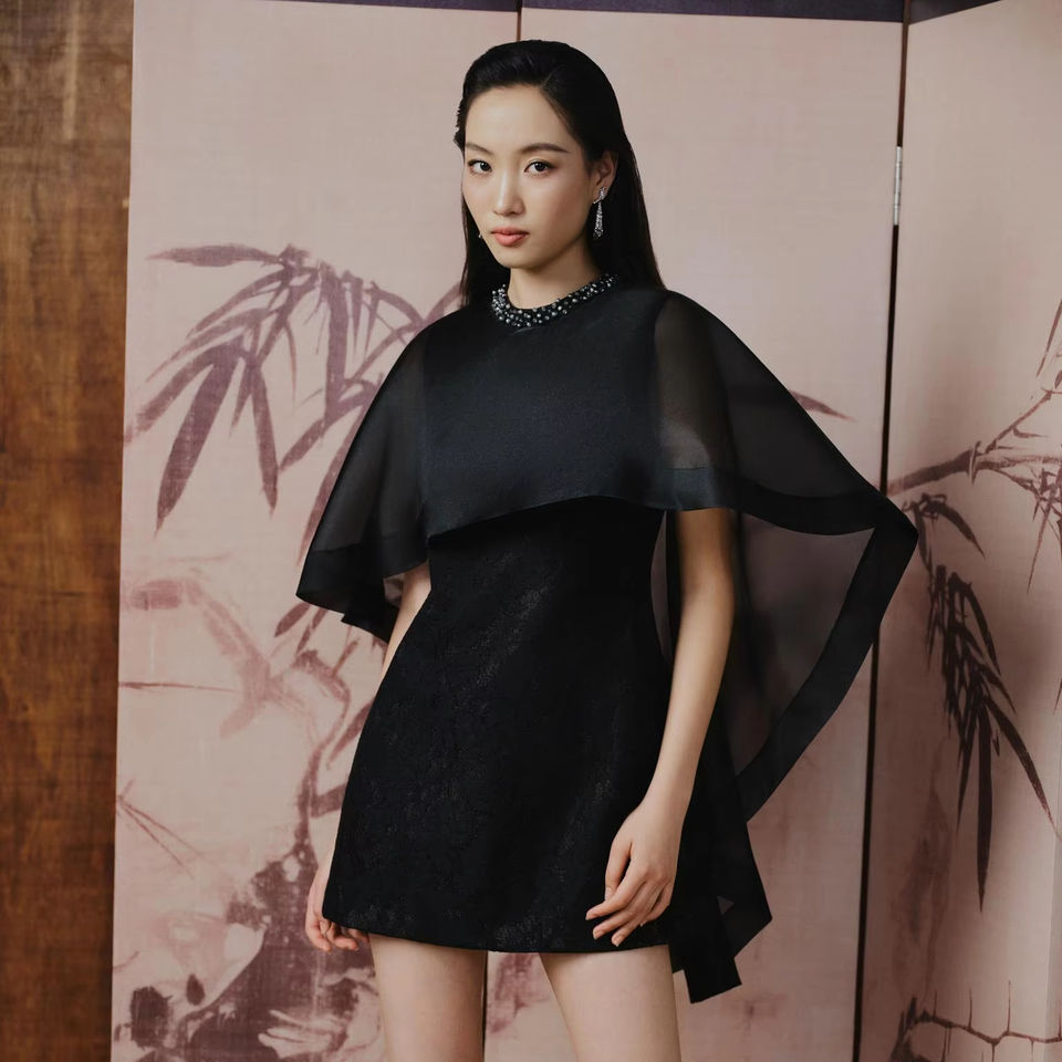 ชุดเดรส MISTY GRACE ผ้าออร์แกนซ่าบางเบา คลุมด้วยผ้าคลุมไหล่ สไตล์เอเชีย รับผลิตแบบ OEM ODM จากเวียดนาม