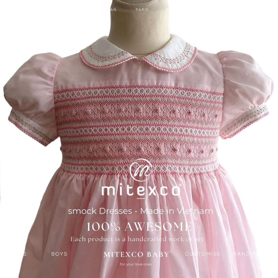 MITEXCO wholesale hand smocked baby pink cotton dresses kids clothing factory direct fast delivery from Vietnam