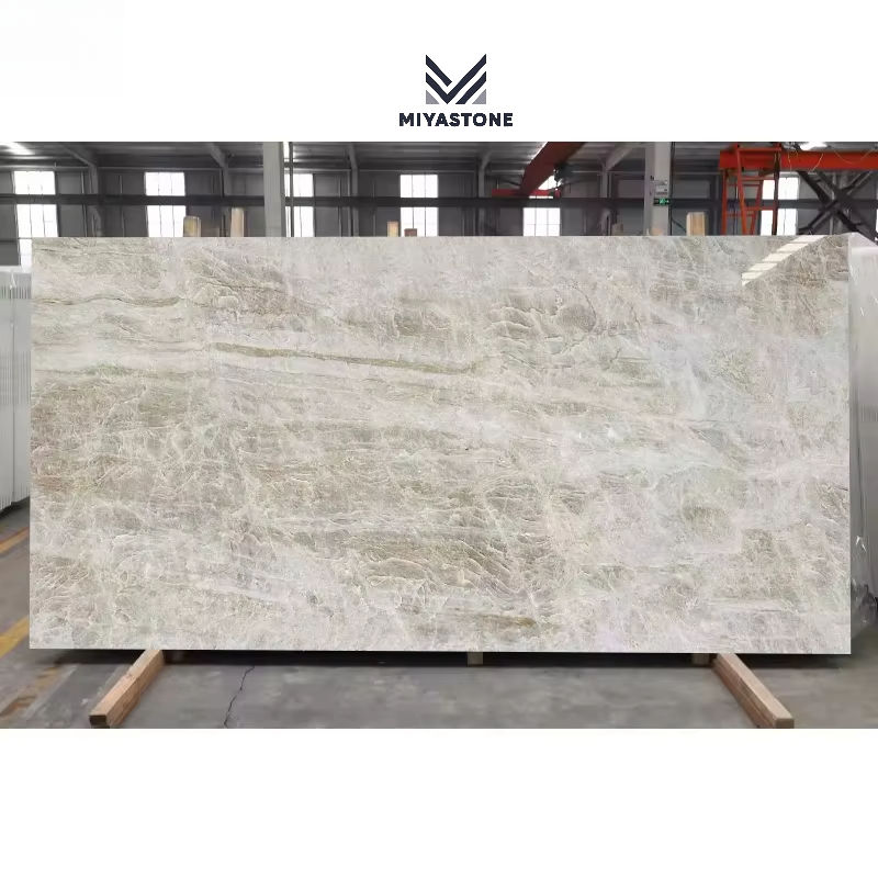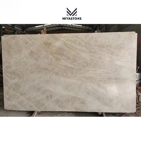 Miya หินหรูหราสีเบจธรรมชาติ quartzite Taj แผ่นหินมะฮอลหินอ่อนสำหรับตกแต่งพื้นหลังผนังห้องครัว