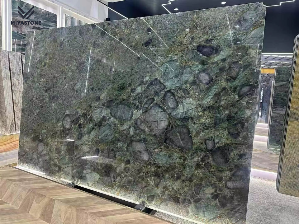 แผ่นหินควอทซ์ไซต์สีเขียวแผ่นหินควอทซ์อัญมณีป่าหรูหรา