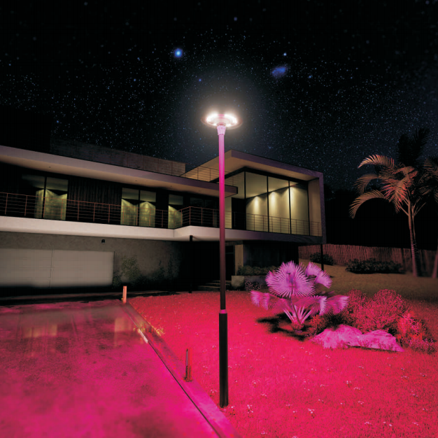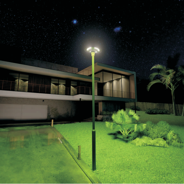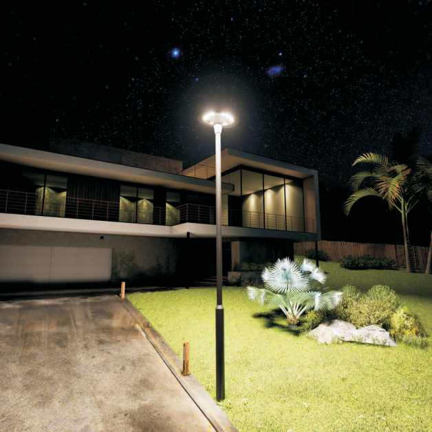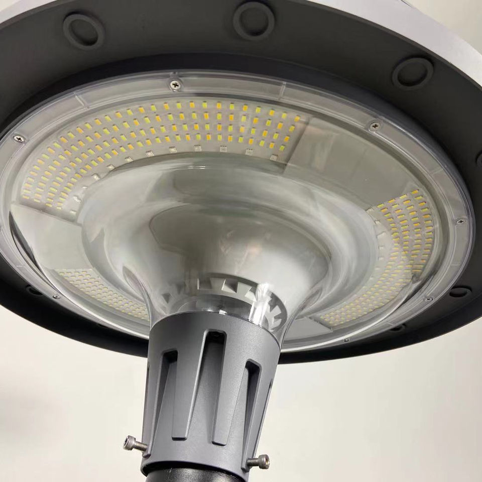 ไฟถนนโซลาร์เซลล์ทรงยูเอฟโอ MJ-EW1200 ผลิตจากอะลูมิเนียมหล่อขึ้นรูป พร้อมไฟ LED สีขาว RGB และแสงวอร์มไวท์