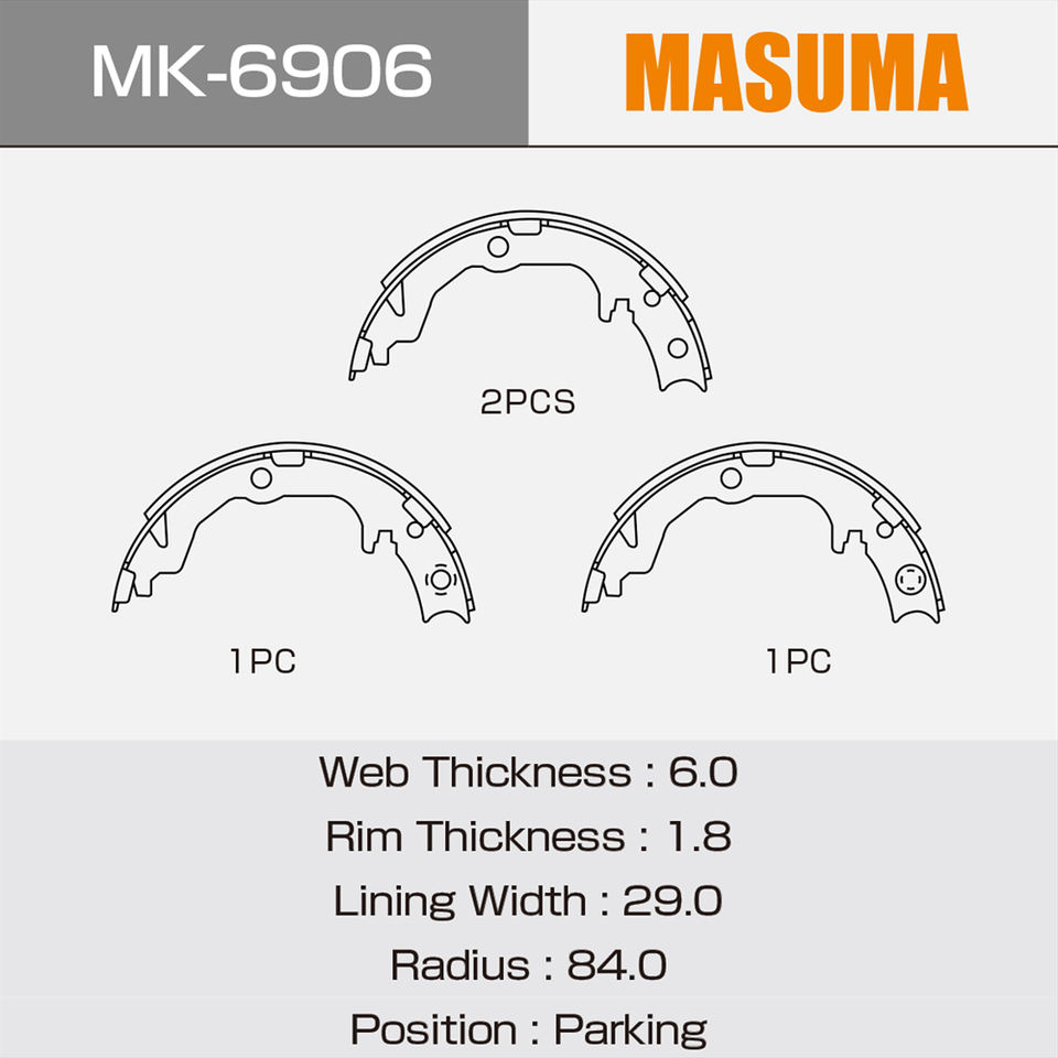 MK-6906 MASUMA Auto Car Repair Drum Brake Shoes 4800A022 4800A041 for MITSUBISHI ASX