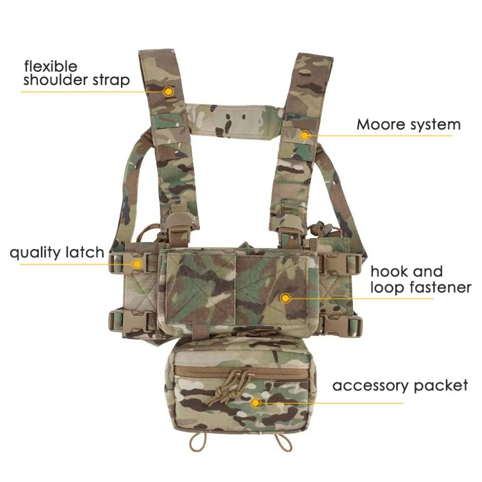 กระเป๋า MK4 Micro Gear Chest Rig สำหรับใส่แม็กกาซีน 5.56 พร้อมช่องใส่แผ่นเกราะ แบบ Chaleco Tactico ลายพราง สำหรับการรบระยะใกล้