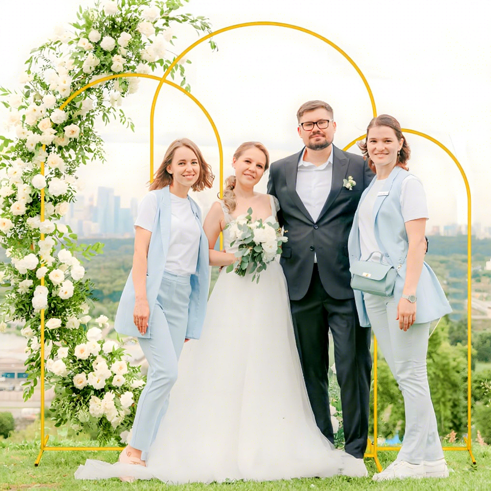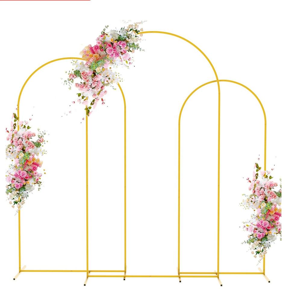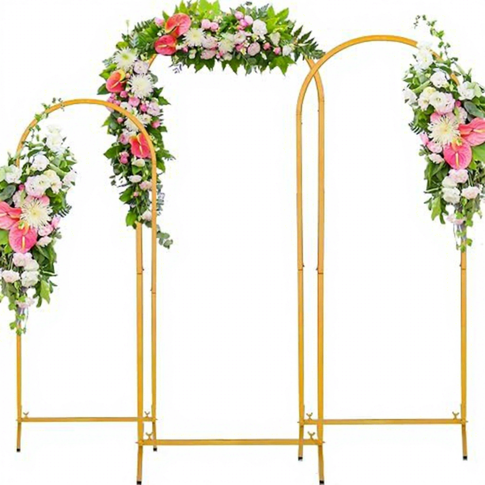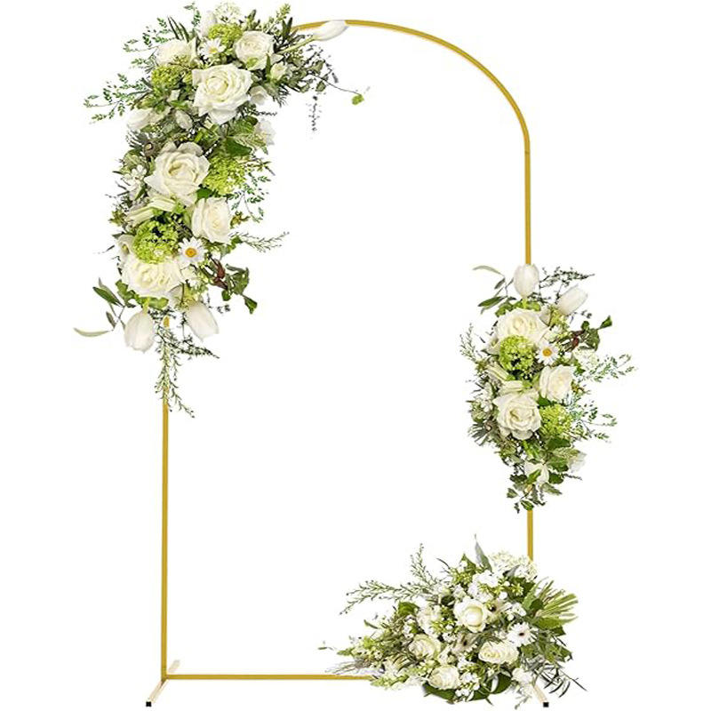 ซุ้มโค้งโลหะสีทอง MKMJ ขนาด 7.2 ฟุต สำหรับงานแต่งงาน ป้ายทางเดิน ขาตั้งลูกโป่ง ฉากหลังถ่ายภาพ