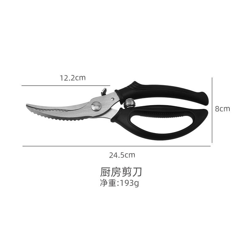 กรรไกรตัดกระดูกไก่ ML สแตนเลส 6 นิ้ว ด้ามจับสีดำ กรรไกรครัวสำหรับตัดเนื้อปลาและกระดูก