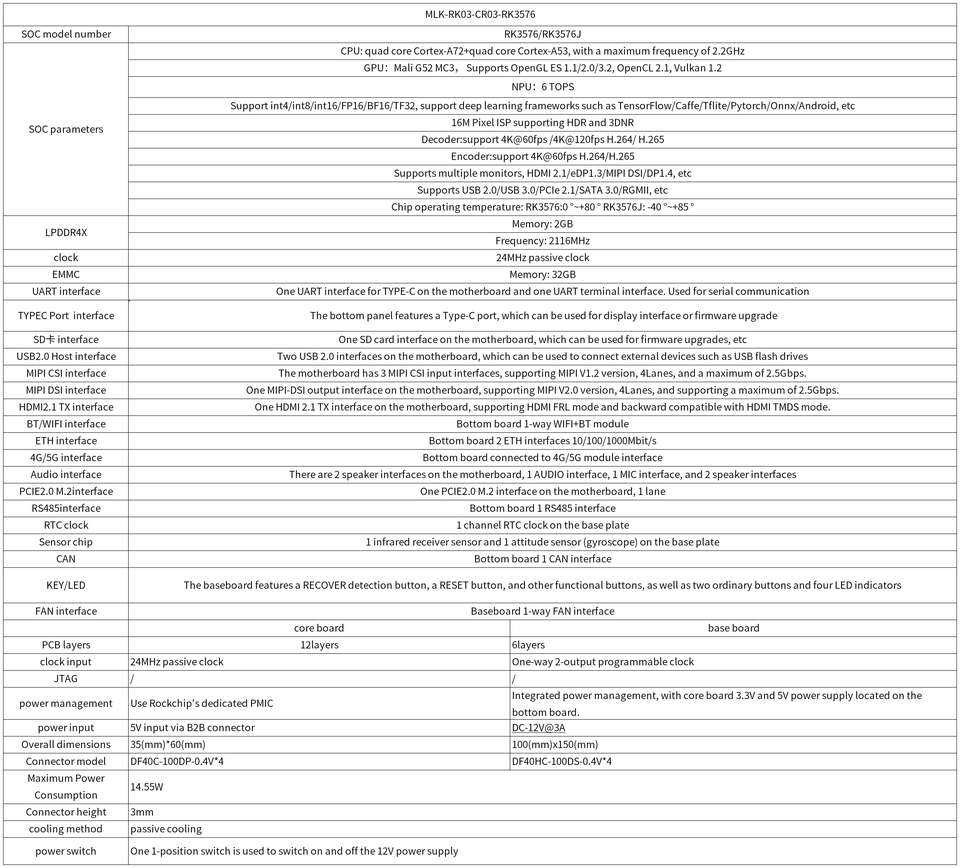 หมายเลขรุ่น:MLK-RK03-CR03-RK3576/RK3576J