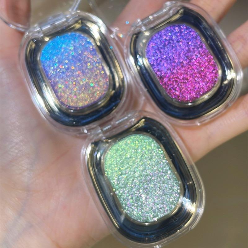 แป้งเมทัลลิกแต่งหน้าแบบกำหนดเอง MLM กลิตเตอร์เดี่ยว สีเหลือบเปลี่ยนเฉดสี เม็ดสีแน่น กันน้ำ อายแชโดว์ดูโอโครม แบรนด์ส่วนตัว ประกายวิบวับ