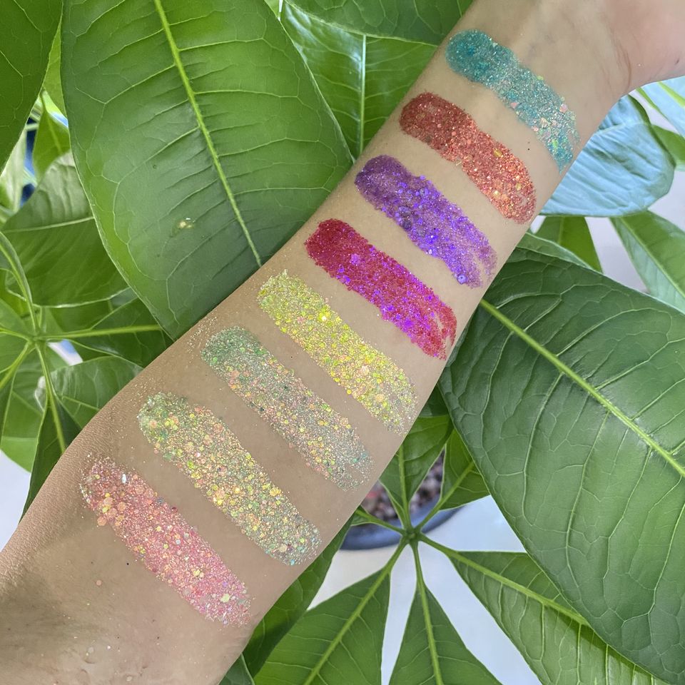 อายแชโดว์เจลครีมกันน้ำแบบวีแกน ผสมกลิตเตอร์ สำหรับแต่งหน้า ติดทนนาน ใช้ได้กับผิวกาย ใบหน้า และเส้นผม