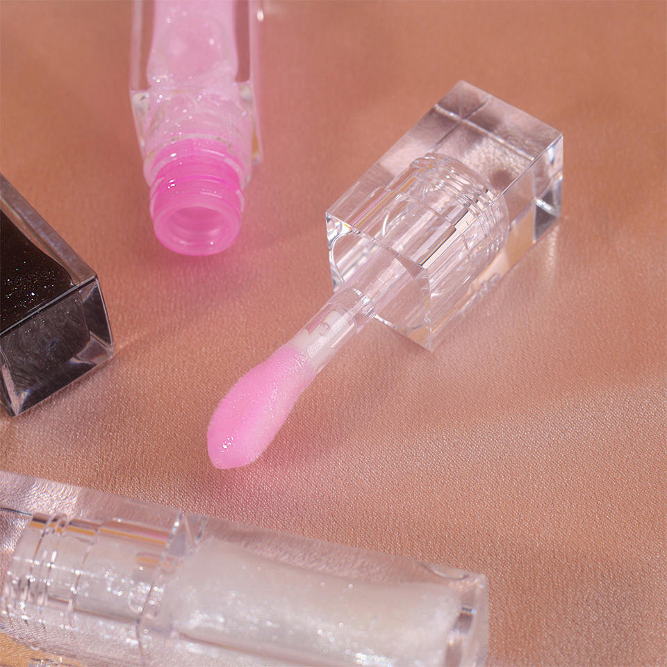ลิปบาล์มเปลี่ยนสี MLM แบบกำหนดเองในหลอดสี่เหลี่ยมใส ฉ่ำวาว พร้อมกลิตเตอร์รูปเพชร ลิปบาล์มผลไม้