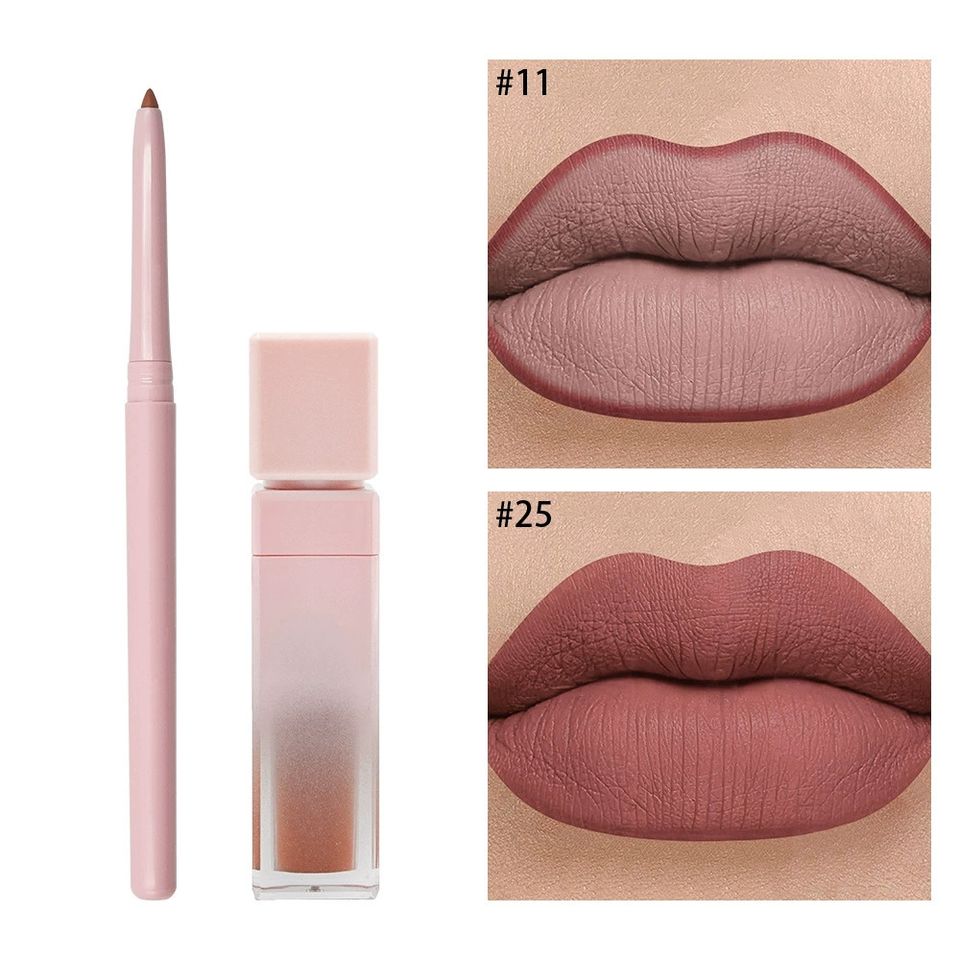 MLM OEM ODM ลิปไลเนอร์เนื้อครีมกันน้ำคุณภาพสูง 2 in 1 แบบแมตต์ ช่วยเพิ่มความอวบอิ่ม พร้อมรับผลิตแบรนด์ส่วนตัว ชุดลิปไลเนอร์และลิปกลอส