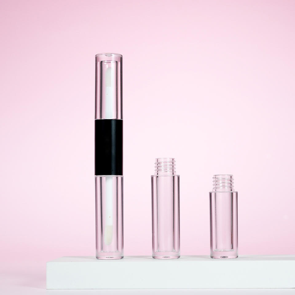 หลอดใส่ลิปกลอสสองด้านใส MLM พร้อมหลอดฉีดลิปกลอสแบบสองด้านขวดพลาสติกที่กำหนดเอง