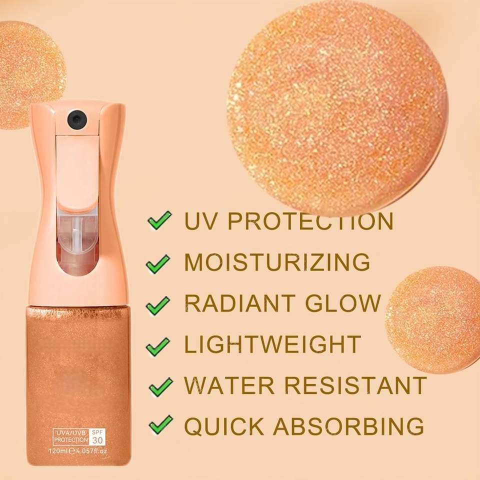 MLM ไพรเวท โลโก้ อิลลูมิเนตติ้ง บอดี้ ชิมเมอร์ ซันสกรีน ออยล์-SPF 42 ไฮเดรตติ้ง โกลว์ สเปรย์ พร้อมน้ำมันหอมระเหย ตัวอย่างฟรี