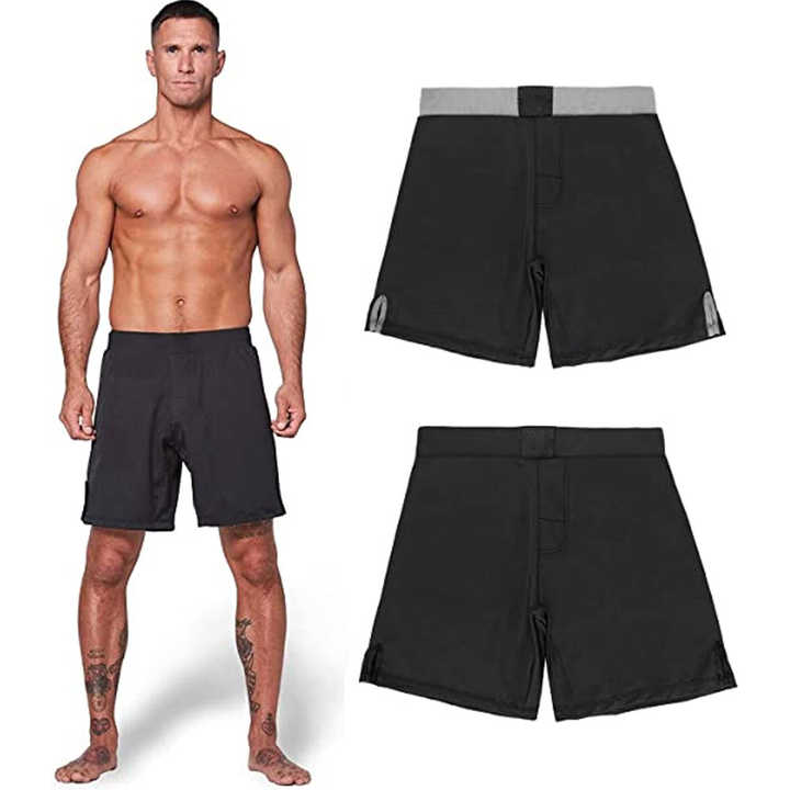 กางเกงต่อสู้ขาสั้นสีดำ100% ผ้าไมโครไฟเบอร์สำหรับ UFC BJJ grappling muay Thai NO-GI Jiu Jitsu
