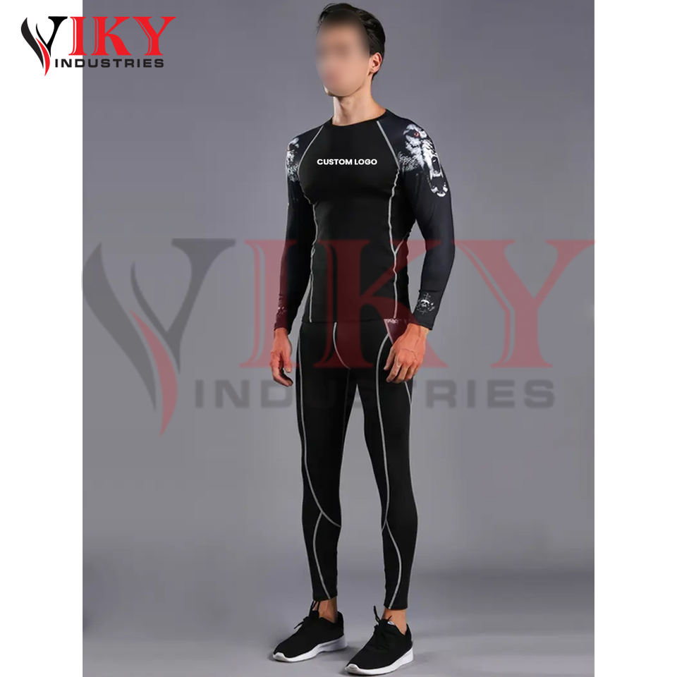 Mma ชุดกีฬาวิ่งออกกำลังกายแบบแห้งเร็วสำหรับผู้ชายชุดฝึกสร้างรูปร่างชุดผดผื่นเสื้อเชิ้ตแขนยาวและถุงน่อง