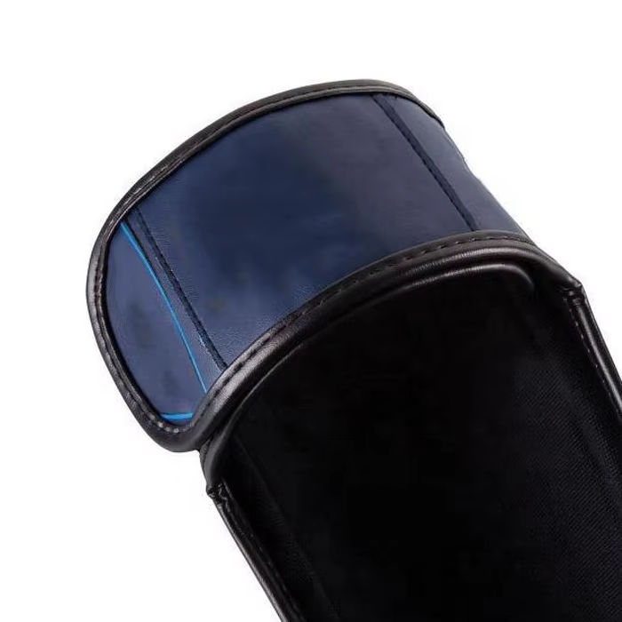 สนับแข้ง MMA คิกบ็อกซิ่ง มวยไทย น้ำหนักเบา โลโก้สั่งทำพิเศษ พร้อมแถบตีนตุ๊กแก หนังวัวแท้คุณภาพพิเศษ