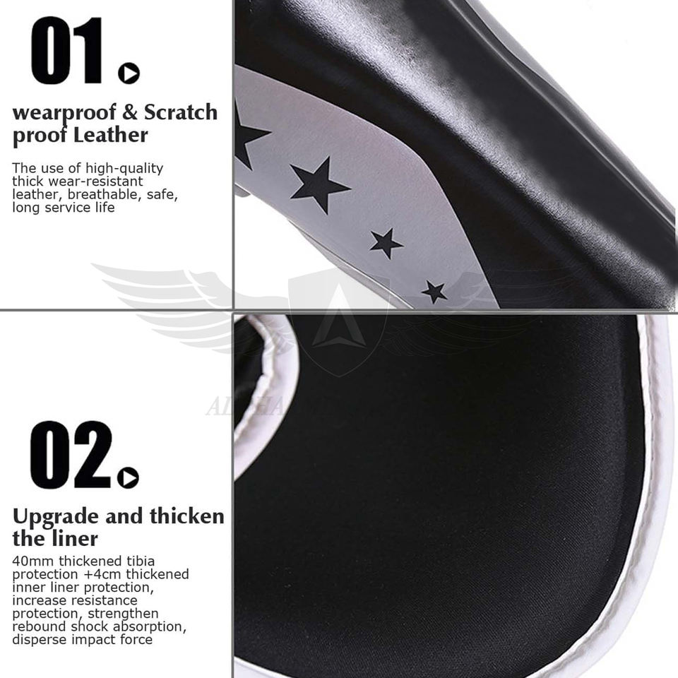 สนับแข้ง MMA ศิลปะการต่อสู้ สีขาวดำ หนัง PU พิมพ์โลโก้ตามสั่ง สินค้ามาใหม่ สำหรับคิกบ็อกซิ่ง มวยไทย ตั้งพื้น