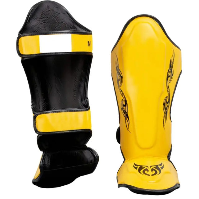 MMA สนับแข้งแผ่นหนังโฟมนวมป้องกันขาอุปกรณ์ป้องกันเท้าคิกบ็อกซิ่งสนับแข้งสำหรับต่อสู้ OEM ออกแบบได้ตามต้องการ