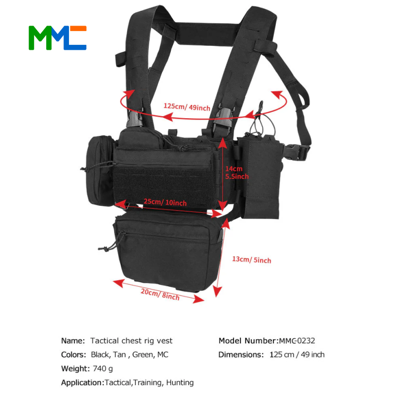 เสื้อกั๊กยุทธวิธี MMC0232 Mk3 แบบติดหน้าอก สำหรับกิจกรรมกลางแจ้ง สายรัดอก สำหรับฝึกซ้อม กีฬา น้ำหนักเบา ชุดเสื้อกั๊กแบบมีน้ำหนัก สีดำ ผลิตจากโพลีเอสเตอร์ ผลิตในประเทศจีน