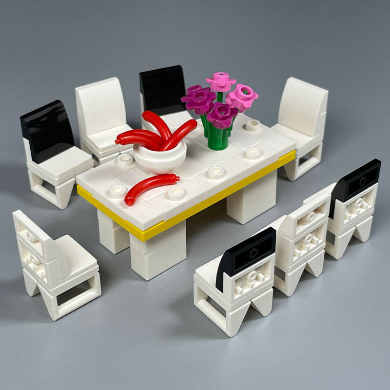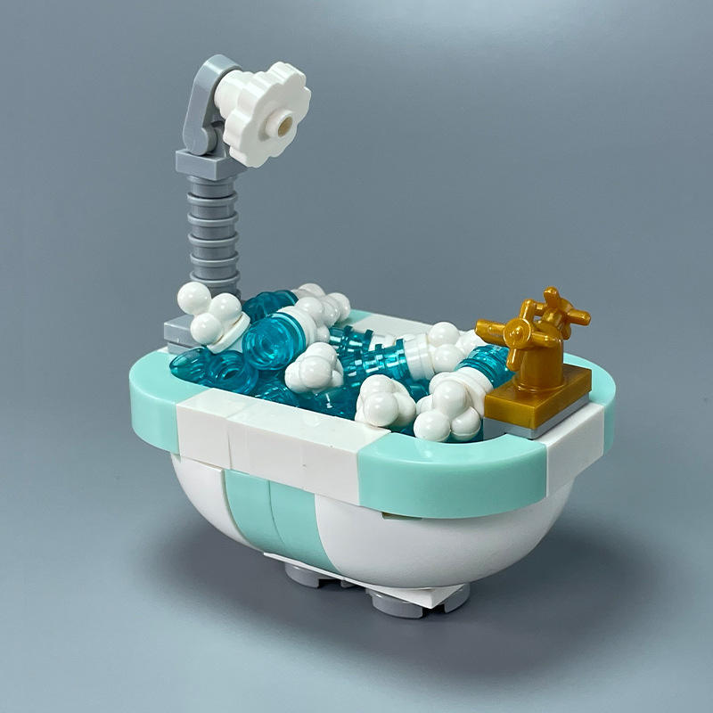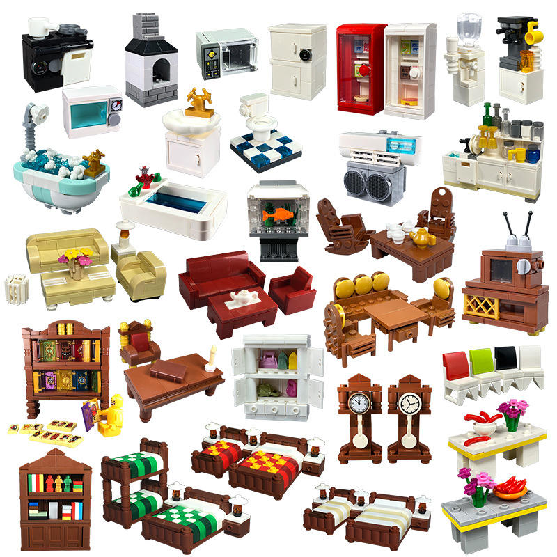 MOC บล็อกประกอบอนุภาคขนาดเล็ก DIY ของเล่นโมเดล บ้าน ห้องครัว ห้องนั่งเล่น และห้องน้ำ