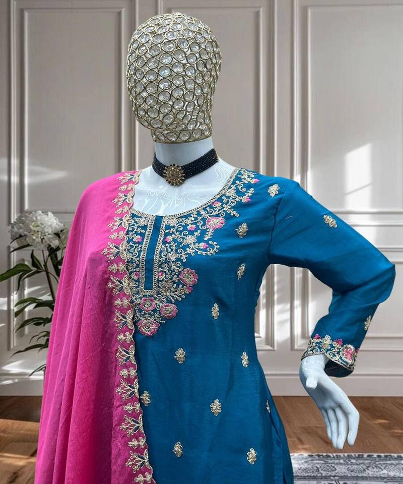 เสื้อเชิร์ทผ้าชินอนปักลายลำดับดีไซน์เสื้อใส่ไปงานปาร์ตี้ Dupatta แบบทันสมัย