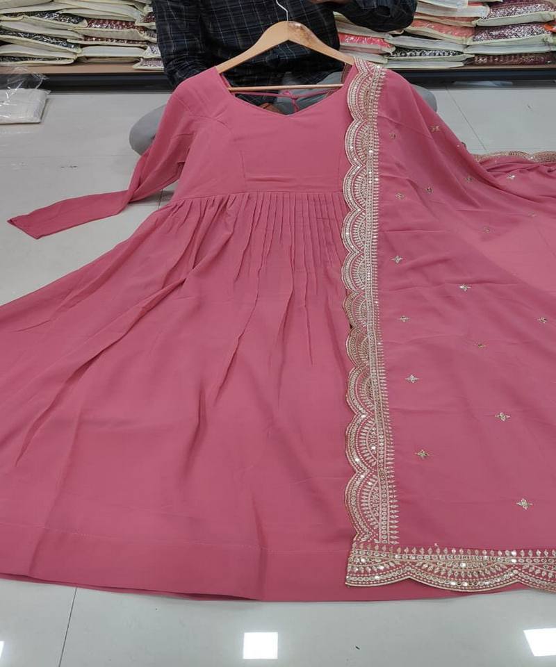 ชุดคุर्ติผ้าฝ้ายเรียบสไตล์โมเดิร์น พร้อมผ้าคลุมไหล่ปักลายเลื่อม งานปักมือ สำหรับใส่ลำลอง มีสินค้าพร้อมส่ง เสื้อผ้าชาติพันธุ์ สีชมพู