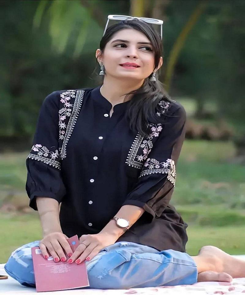 MODERN COTTON WEAVING FANCY EMBROIDERY KURTI ONLY TOP DAILY WEAR QUICK DRY WHOLESALE PRICE ETHNIC GARMENT
