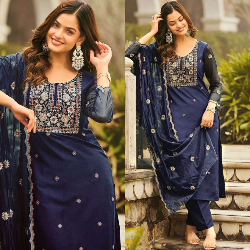 ชุดใส่ทำงานปักผ้าเรยอนสีฟ้า