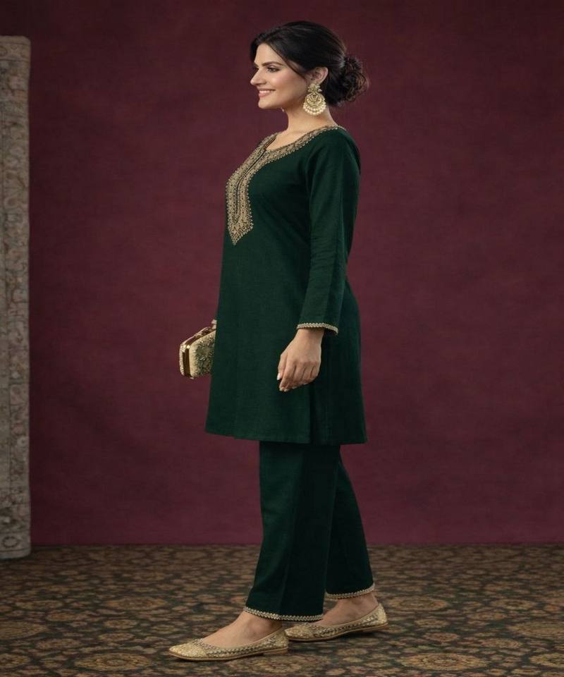 ชุดเสื้อผ้าผู้หญิงสไตล์โมเดิร์น ผ้าเรยอนสลับลายปักเลื่อม ผ้าฝ้าย งานปักมือ ชุดเซ็ตสำหรับงานเทศกาล ราคาขายส่ง เสื้อผ้าชาติพันธุ์ สีเขียว เสื้อคุर्ติ