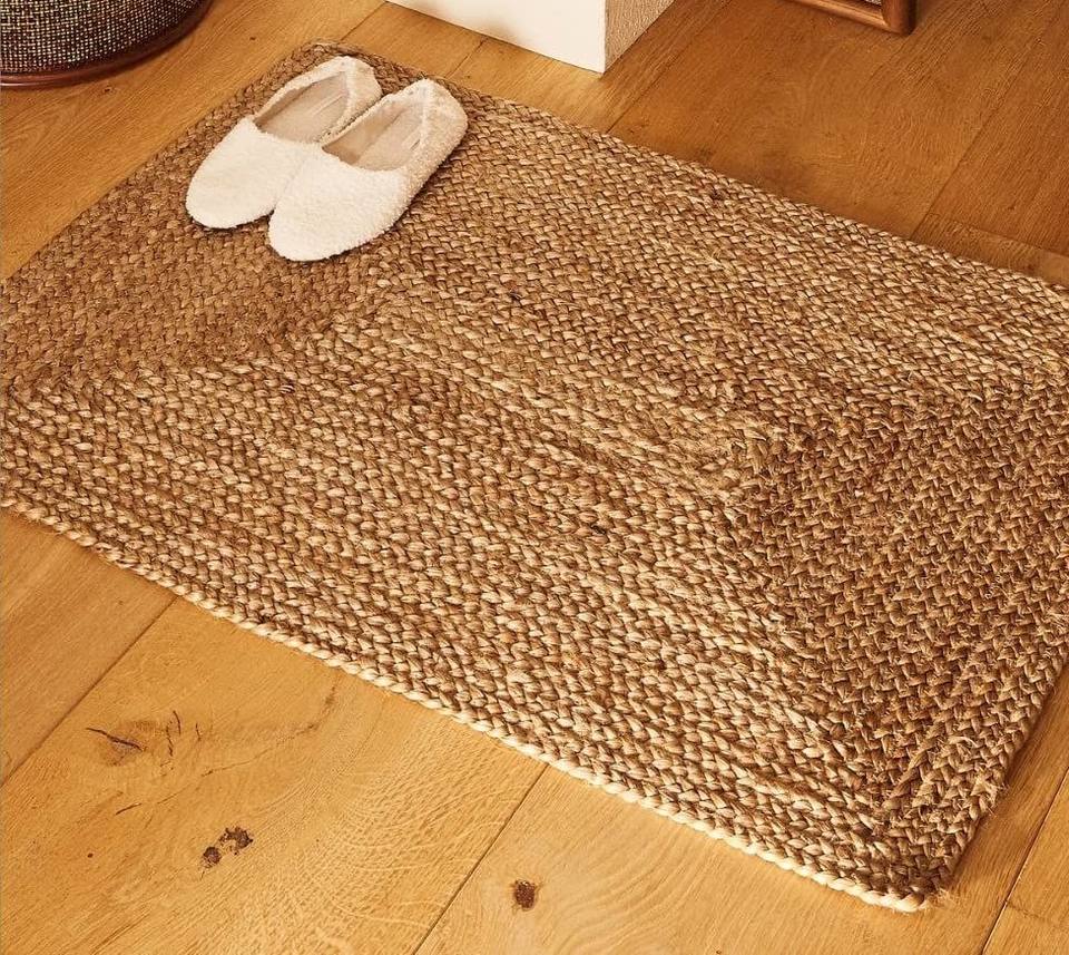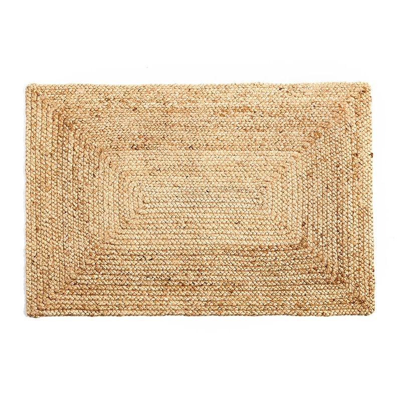 พรมและพรมเช็ดเท้าทรงสี่เหลี่ยมผืนผ้าสไตล์โมเดิร์น ทำจากปอกระเจา ทอด้วยเครื่องจักร เป็นมิตรกับสิ่งแวดล้อม ป้องกันการลื่นไถล ใช้ตกแต่งได้