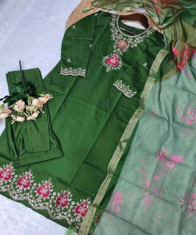 ชุดเสื้อผ้าฝ้ายปักลายทันสมัยพร้อมผ้าคลุมไหล่ สไตล์ลำลองหรูหรา ราคาขายส่ง เสื้อผ้าชาติพันธุ์ สีเขียว