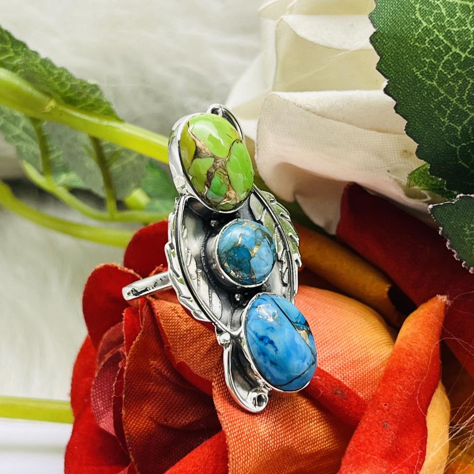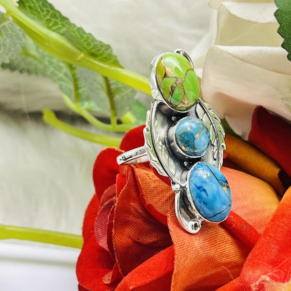 แหวนเทอร์ควอยซ์โม925แหวนเงินสเตอร์ลิงแหวนแฮนด์เมดแหวนเทอร์ควอยซ์แหวนเงินดีไซน์เนอร์แหวนแต่งงานแหวนแฟชั่น