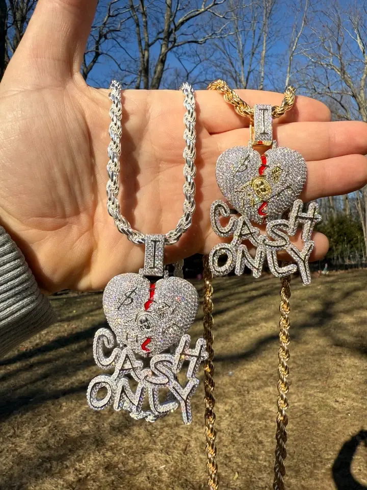 จี้สร้อยคอฮิปฮอปทรงหัวใจแตกประดับเพชรโมอิสซาไนต์ Tishya Diamond เงินแท้ 925 ชุบทองคำสีกุหลาบ รับชำระเงินสดเท่านั้น