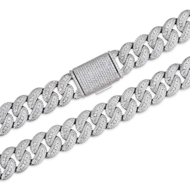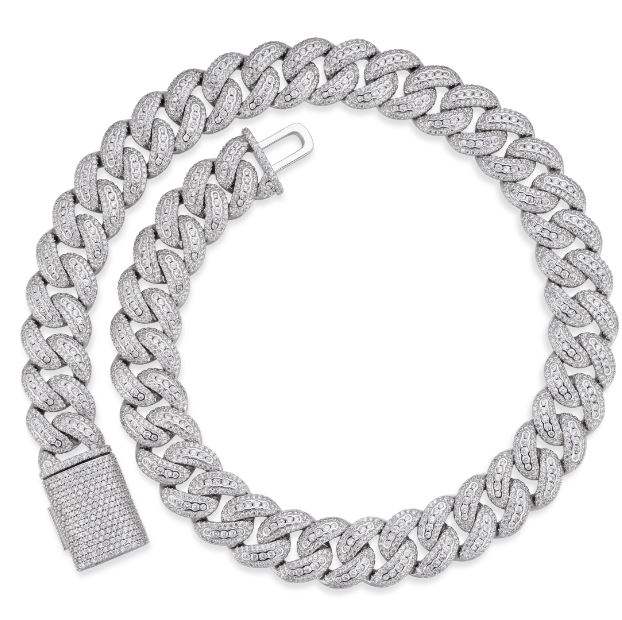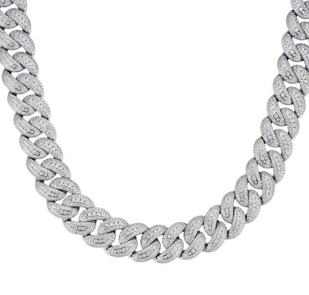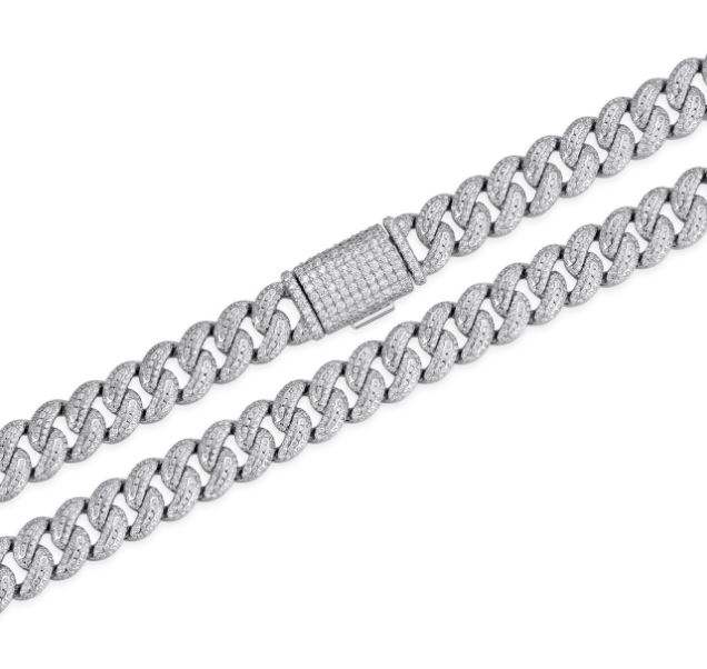 สร้อยคอเงินแท้ 925 ชุบโรเดียม ประดับมอสซาไนต์ ดีไซน์แบบ Cuban Link พร้อมจี้ห้อย
