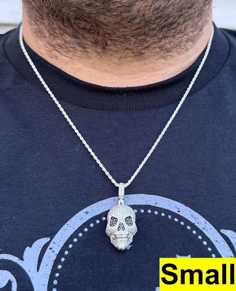 จี้โมอิสซาไนต์เงินแท้ 925 รูปหัวกะโหลก 3 มิติ สไตล์คริสเตียน ฮิปฮอป มี 3 ขนาดให้เลือก ขนาดเล็ก ขนาดใหญ่