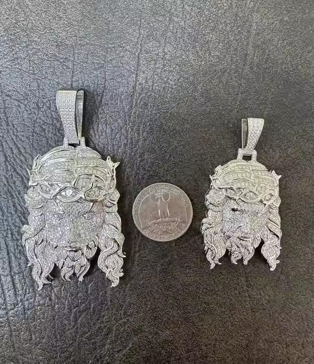จี้พระเยซูประดับมอยส์ซาไนต์ เงินแท้ 925 ชุบโรเดียม งานจิวเวลรี่ชั้นดี ด้านหลังแบบตัน มี 2 ขนาด 1.5 และ 2.5