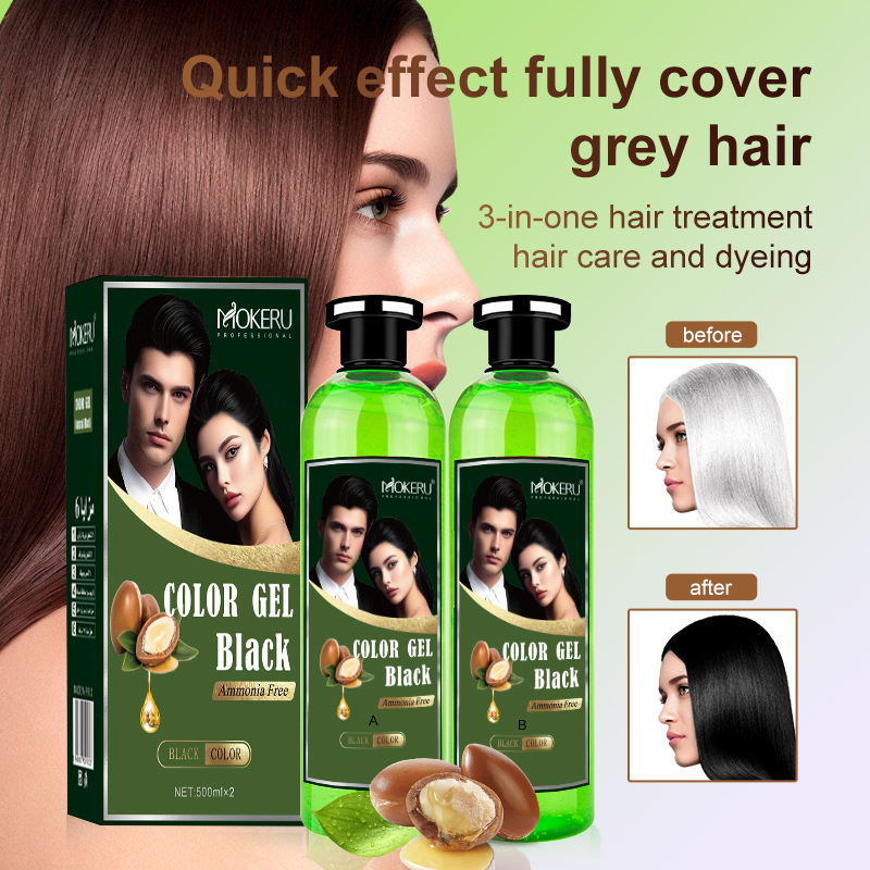 โมเครุ ผู้ผลิต ไม่ต้องสัมผัสผิว ใช้งานง่าย 500 มล.*2 เจลเปลี่ยนสีผมสีดำ ผสม 1:1 ใช้งานง่าย สีติดทนนาน