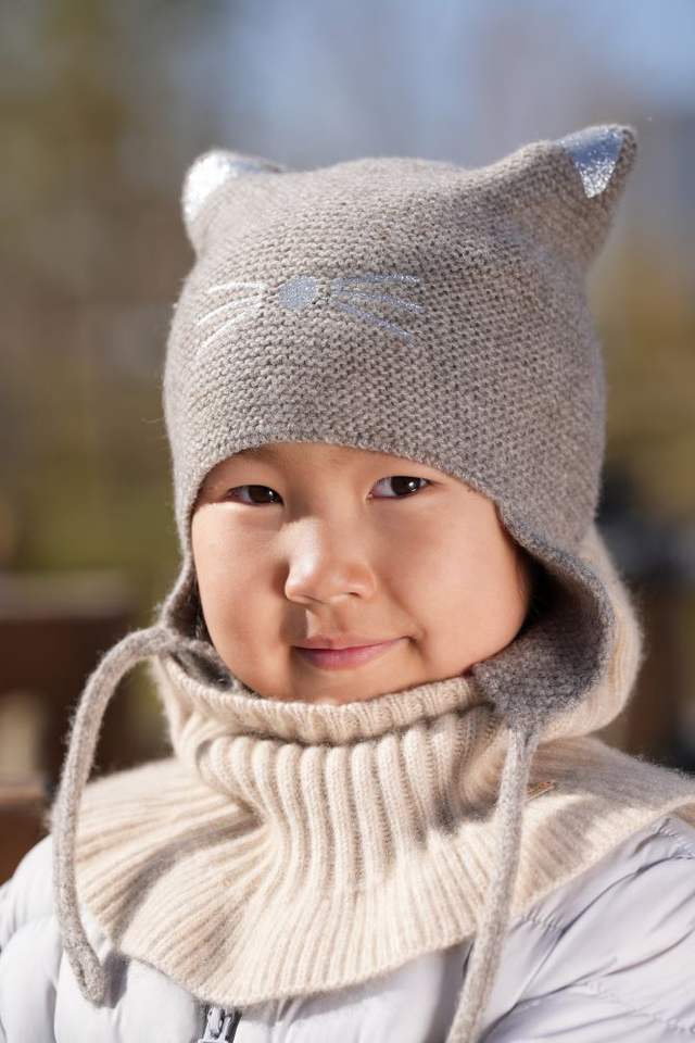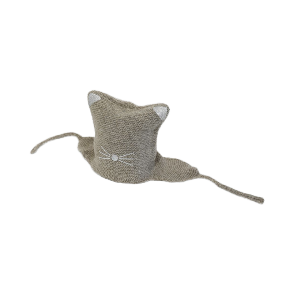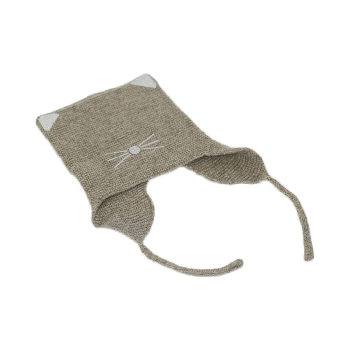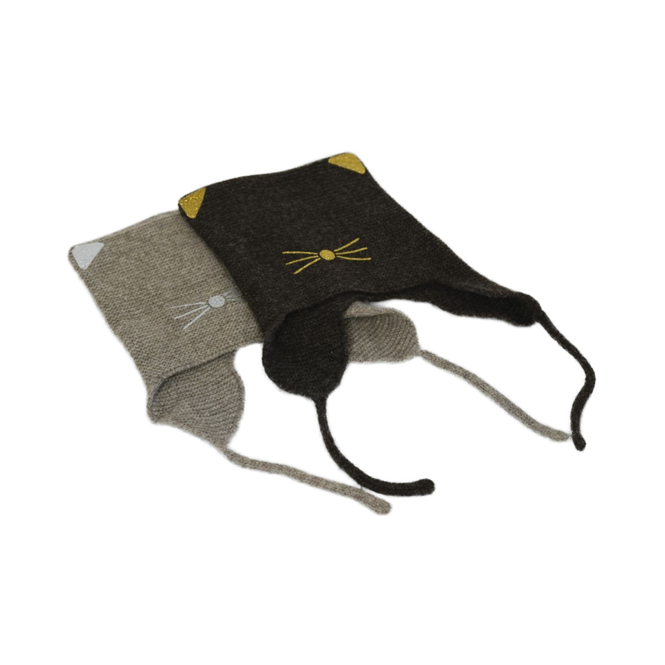 MONECO Kids' Organic Gray Wool Beanie Hat Cat Character Printed Design Cute Unisex Winter Warm Soft Eco-Friendly Daily Use 4-7