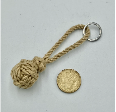 พวงกุญแจกำปั้นลิงสีเบจทำด้วยมือเชือกลิงกำปั้นนอตและสแตนเลส