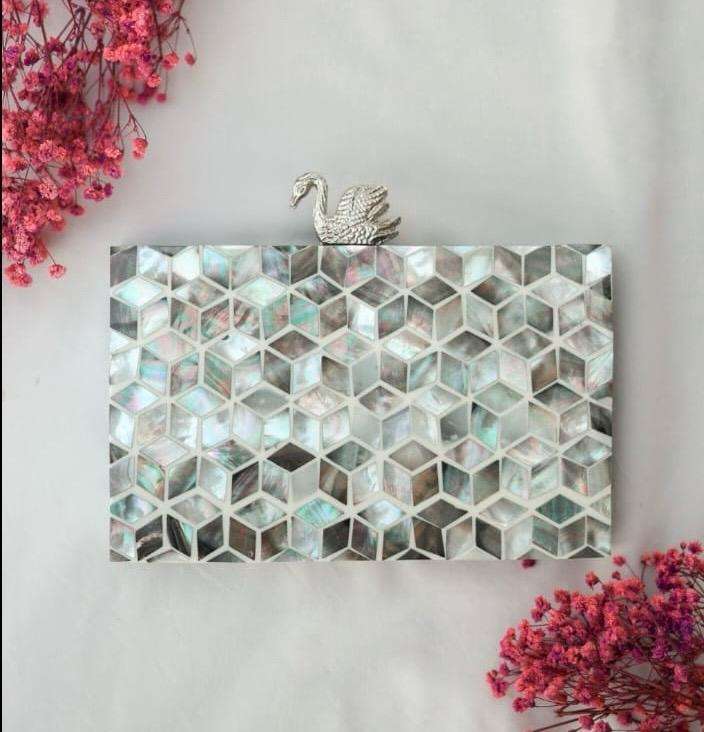 กระเป๋าคลัทช์สำหรับผู้หญิงทำจากเรซินสีขาวพร้อมด้ามจับกลมสีทอง