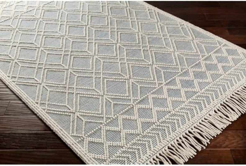 พรมโบโฮ MORE ขนาด 5'x8' ทอจากผ้าฝ้าย/ขนสัตว์ หลายสี ซักได้ ขนปุยปานกลาง ลายเรขาคณิต สำหรับห้องโถง มีพู่ห้อย ลายชนเผ่า ลายเพชร