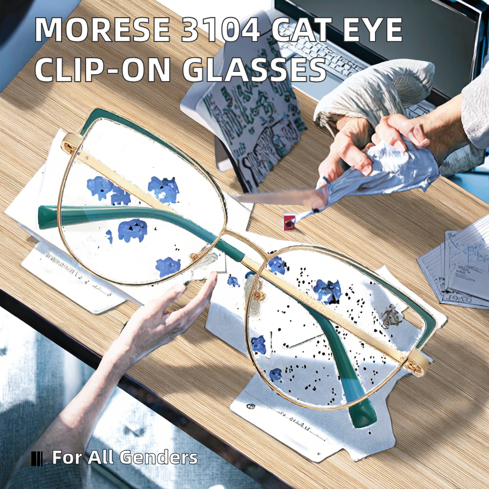 แว่นตาคลิปออนสำหรับผู้หญิง MORESE 3104 ทำจากสแตนเลส สไตล์แคทอาย สำหรับใช้กับคอมพิวเตอร์ พร้อมกรอบลายสัตว์ ป้องกันแสงสีฟ้า