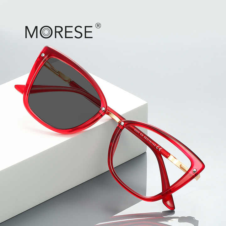 แว่นตาแฟชั่น P2223ของผู้หญิง Morese กรอบผีเสื้อป้องกันแสงสีฟ้าและวัสดุโฟโตโครมิก TR90ลายสัตว์