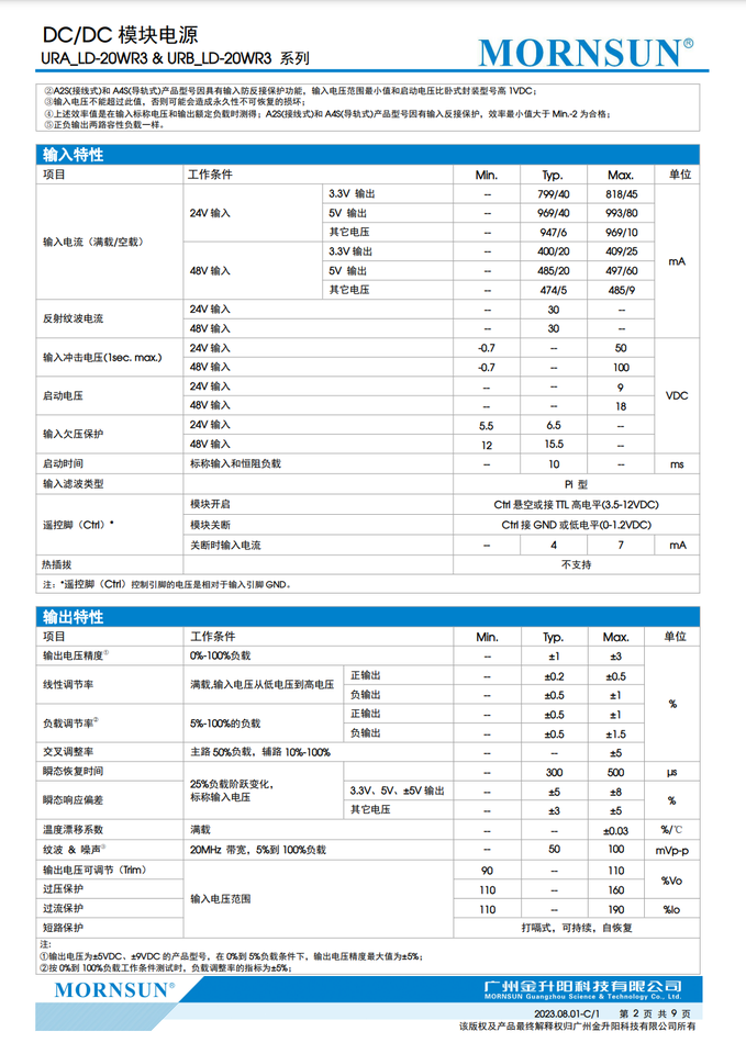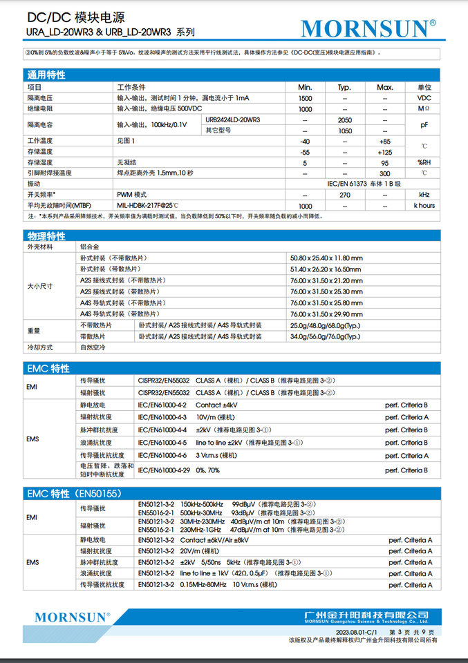 Mornsun โมดูลไฟ DC-DC URB2424LD-20WR3A4S 9-36V ถึง24V 20W ติดตั้งบนราง A110