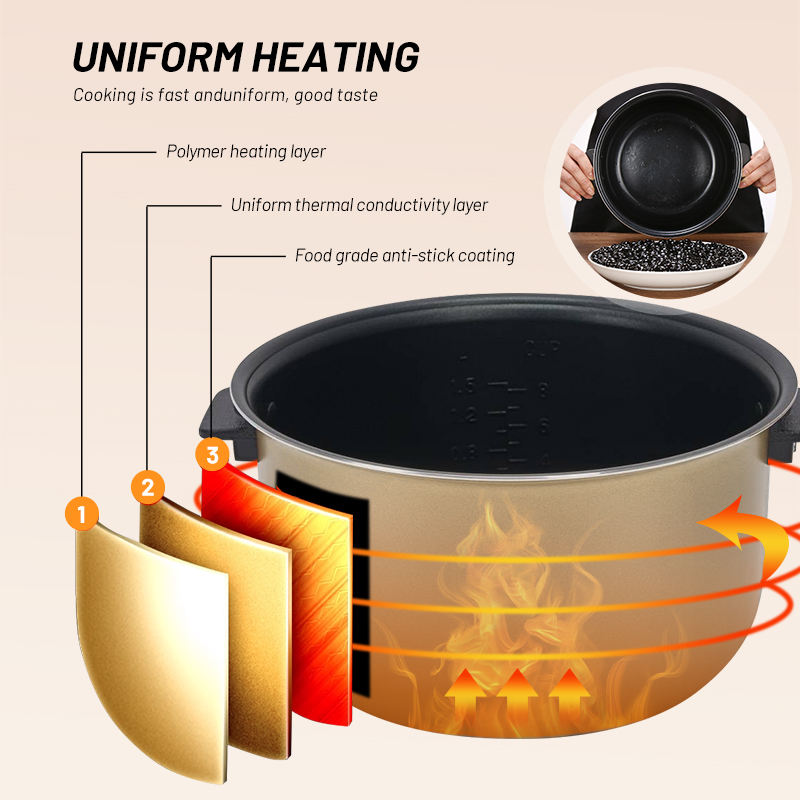 ฟังก์ชัน:จอแสดงผล LED ดิจิตอล, ฟังก์ชั่นจับเวลา, ไม่ติดเคลือบภายในหม้อ