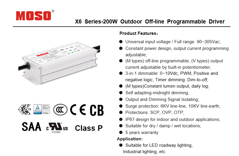 มอสโกไดรเวอร์ X6 200W ชุดไดรเวอร์ไฟ LED 41V 62V 96V 143V 286V หรี่แสงได้
