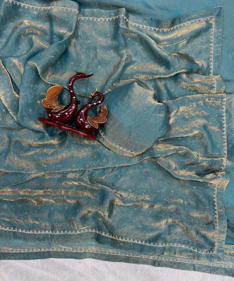 ส่าหรีผ้าไหมชีฟองปักลายมอสส์เสื้อผ้าพื้นเมือง