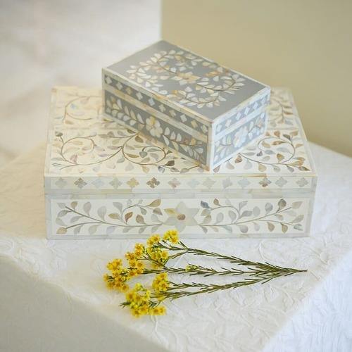 แม่ของกล่องมุกสีขาวและหลายสีตกแต่งกล่องฝังกระดูกทำด้วยมือผลิตจากอินเดีย